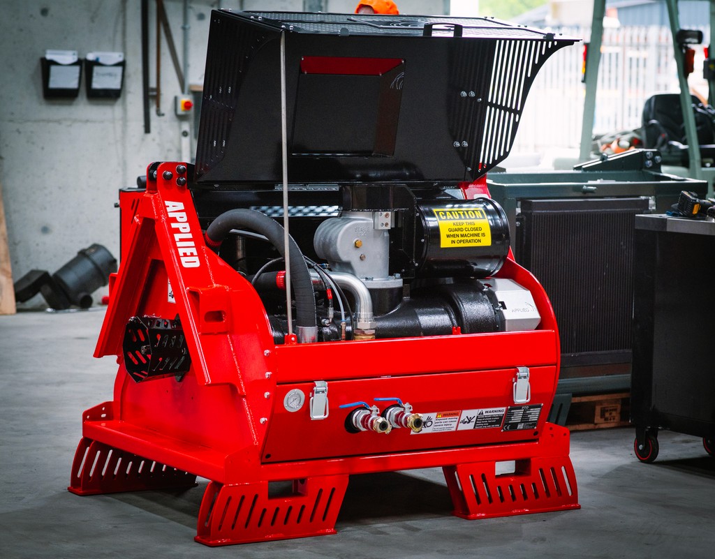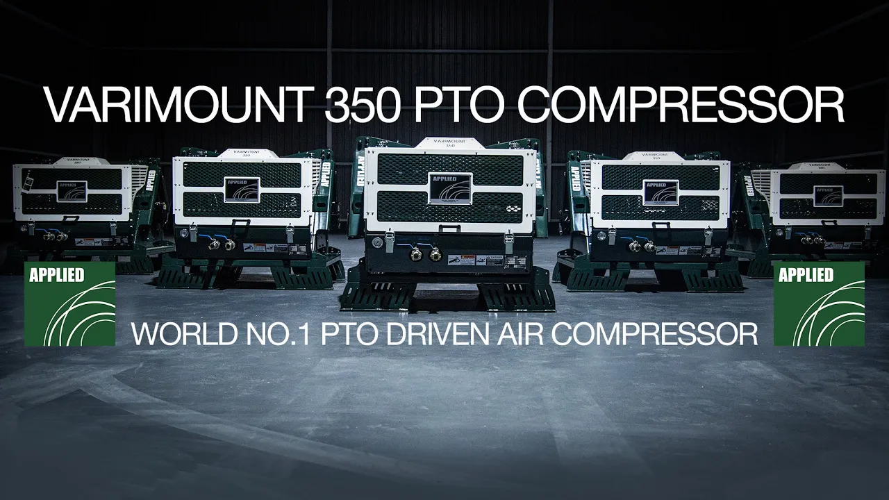 The Applied Varimount 350 PTO Compressor is a tractor-mounted air compressor delivering up to 350 CFM for outdoor tasks like clearing slurry lines. Its air-driven design ensures durability and easy mounting on a tractor's front or rear.
